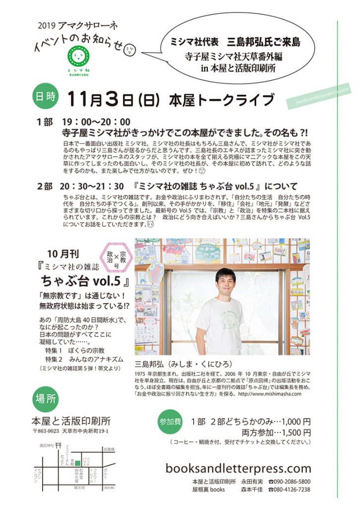 | 24 | 本屋と活版印刷所・あまくさ民藝舎 | 本 |